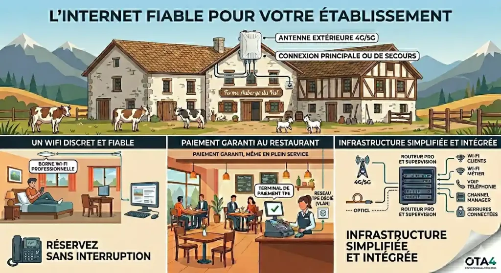 Un hôtel sans WiFi qui fonctionne, c’est un hôtel qui prend des avis négatifs. Un restaurant dont le terminal de paiement coupe en plein service, c’est un restaurant qui perd des clients. Et un établissement dont la ligne téléphonique tombe sans prévenir, c’est un établissement qui rate des réservations.